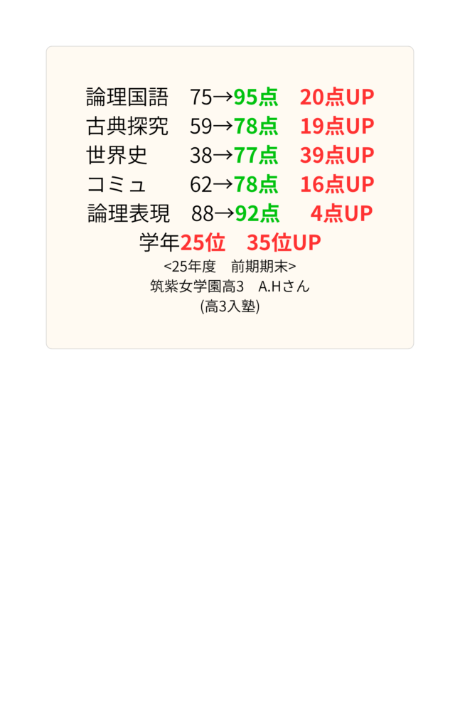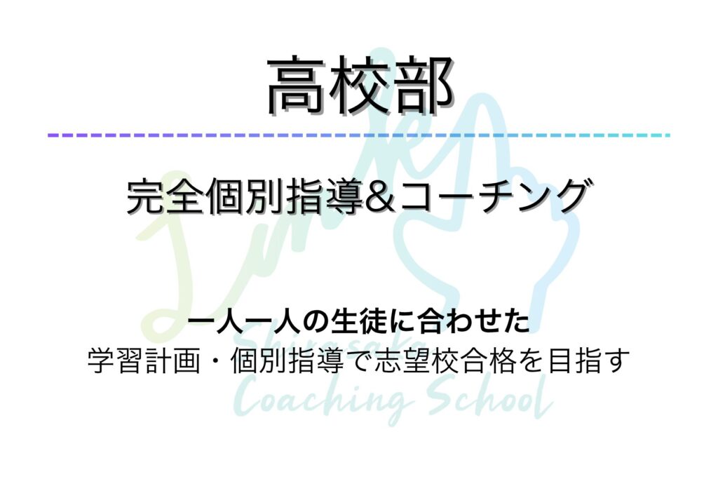 高校部では、中学生で学んだ学習方法、形成した学習習慣を基盤として、面談を通してヒアリングした内容をもとに生徒一人一人の目標や性格などにあわせた完全オーダーメイドな学習計画を立案します。
